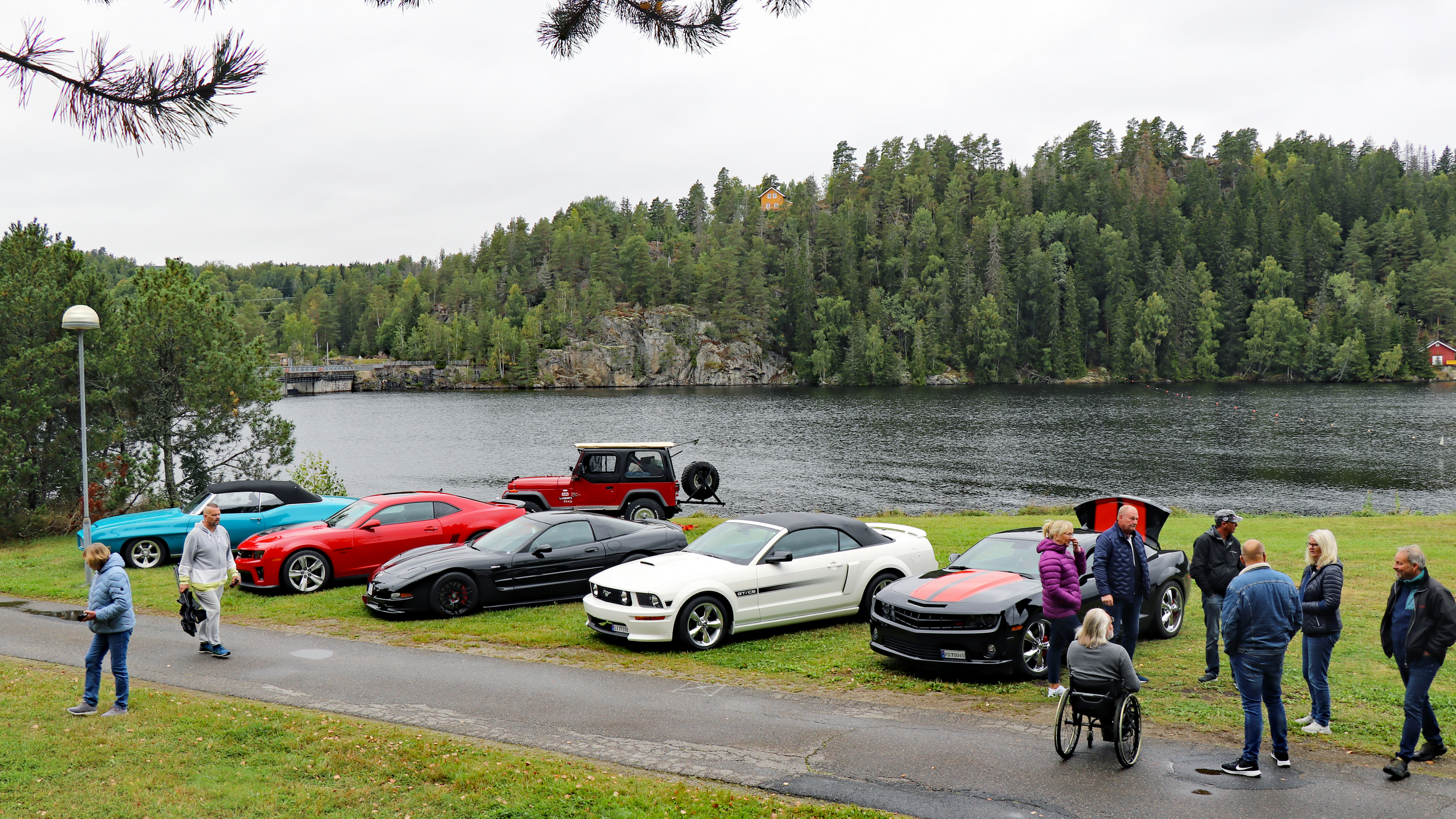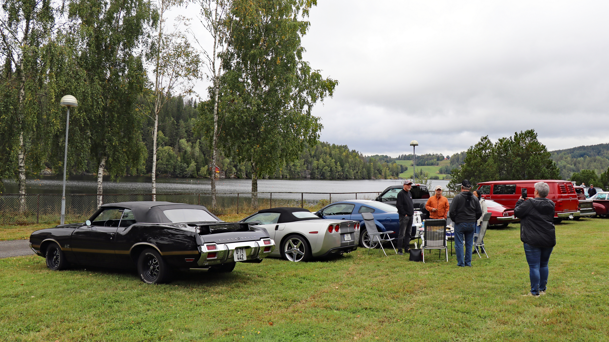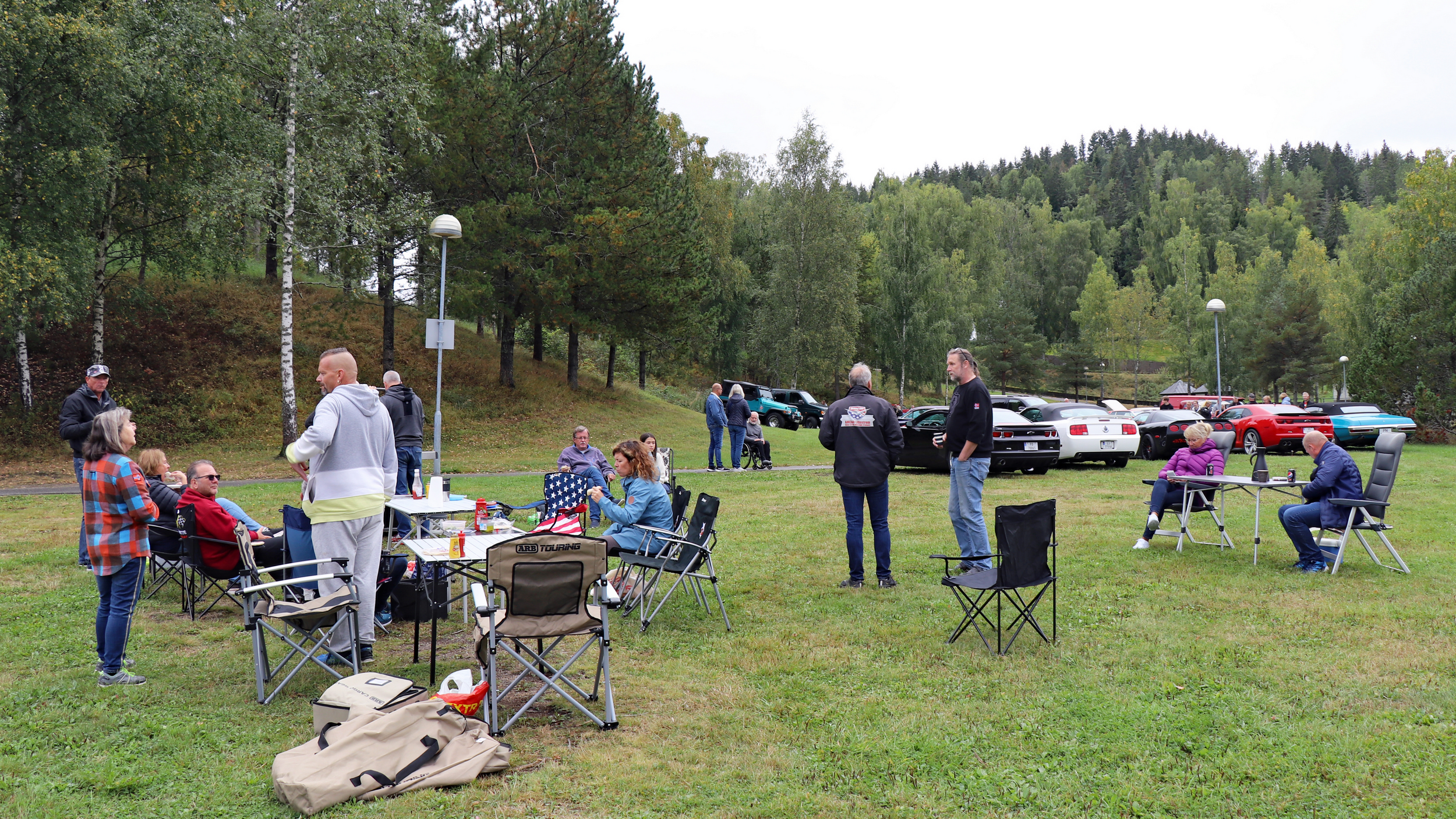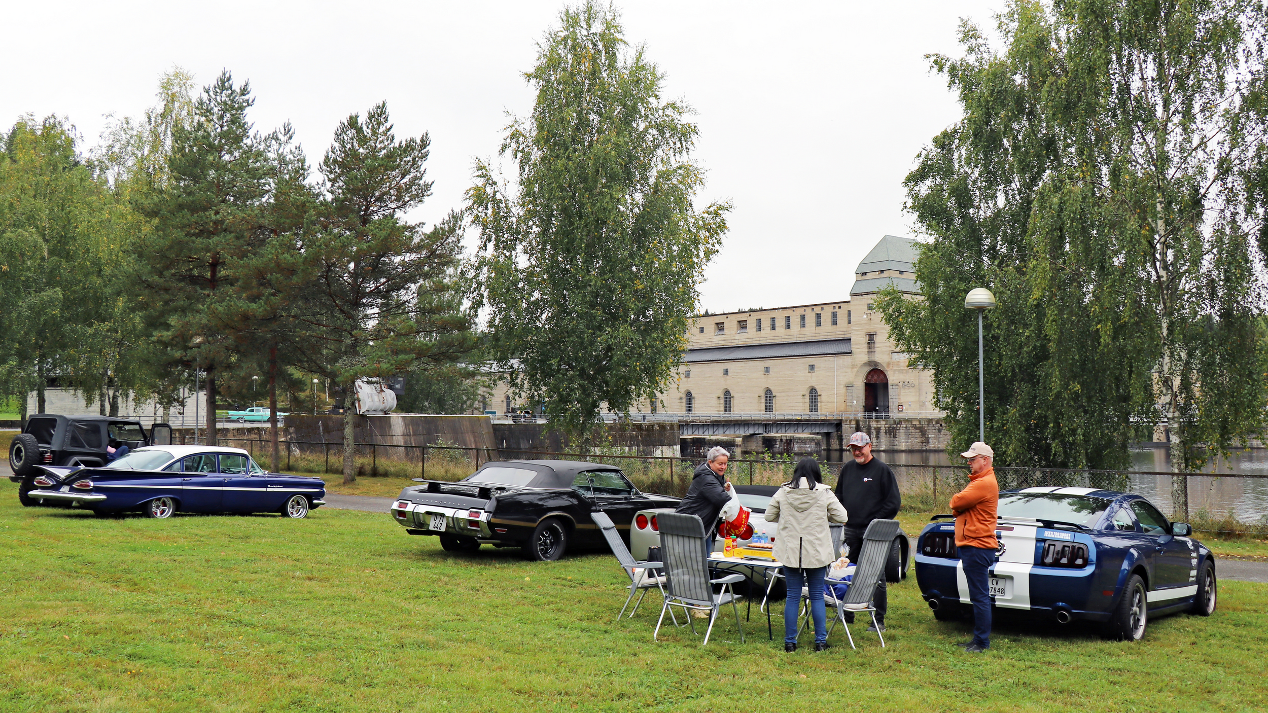 29 biler fulle av blide folk, trosset en grå søndag morgen og møtte opp ved Skedsmohallen for å bli med på den årlige cruisingen rundt Øyeren. Det tradisjonelle stoppet ved Solbergfoss for grilling og en fin prat var selvsagt lagt inn. Frode hadde festet den lille, transportable (🤪🤣🤪) gassgrillen som ballast bak på Jeep’en, slik at vi fikk grillet både pølser og hamburgere. Takk for en trivelig tur! Foto: Kjetil E. Nygaard