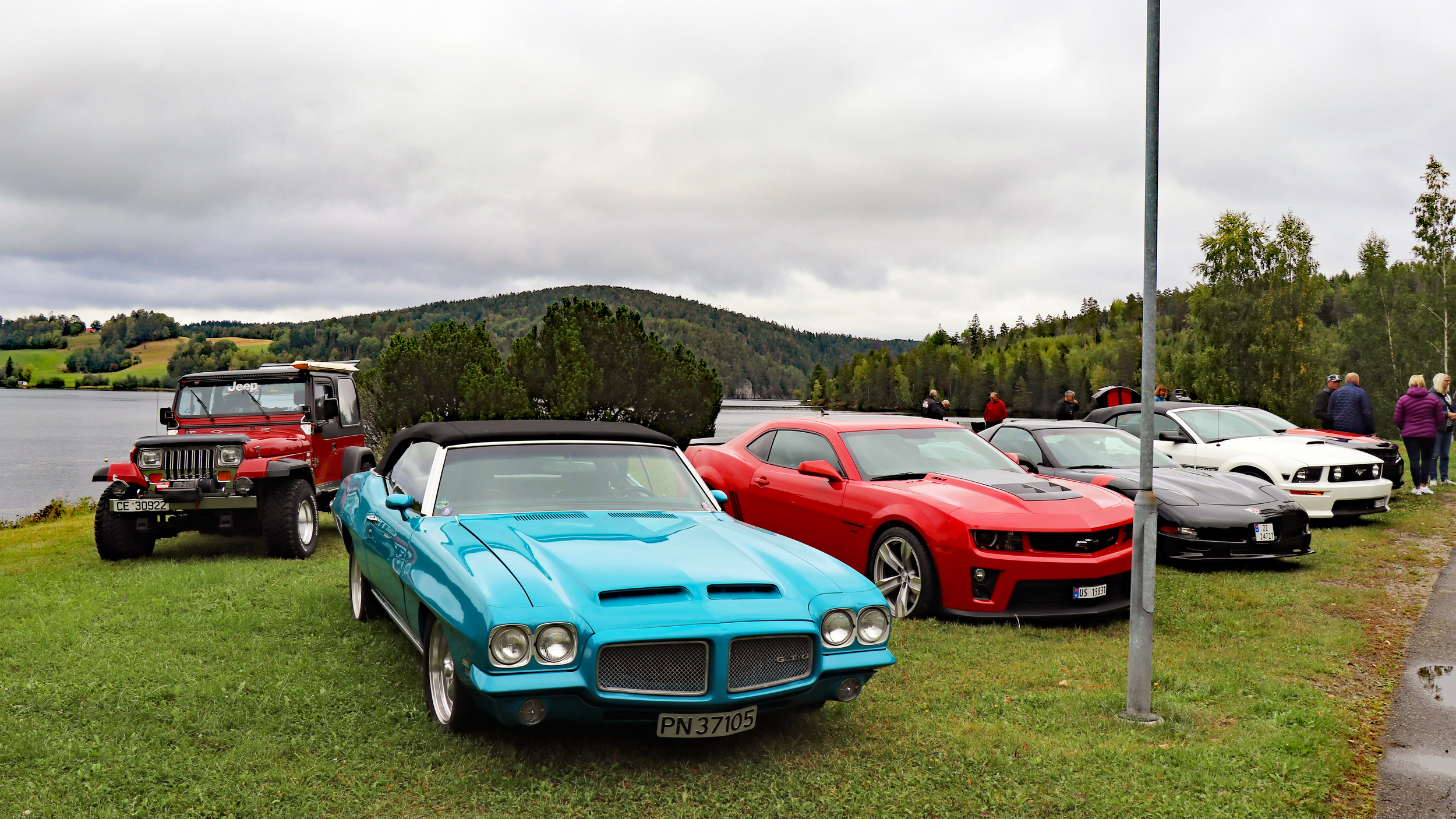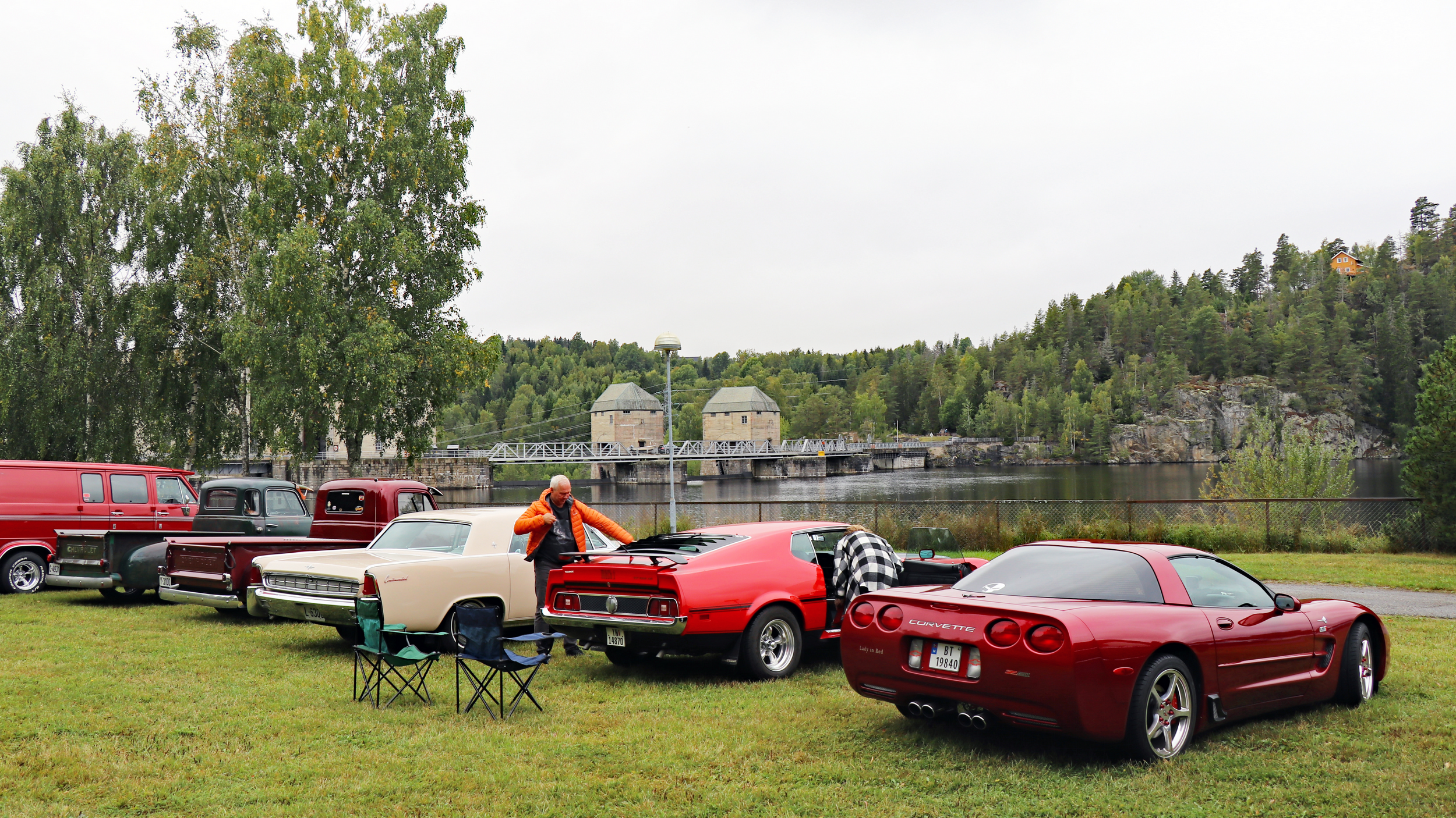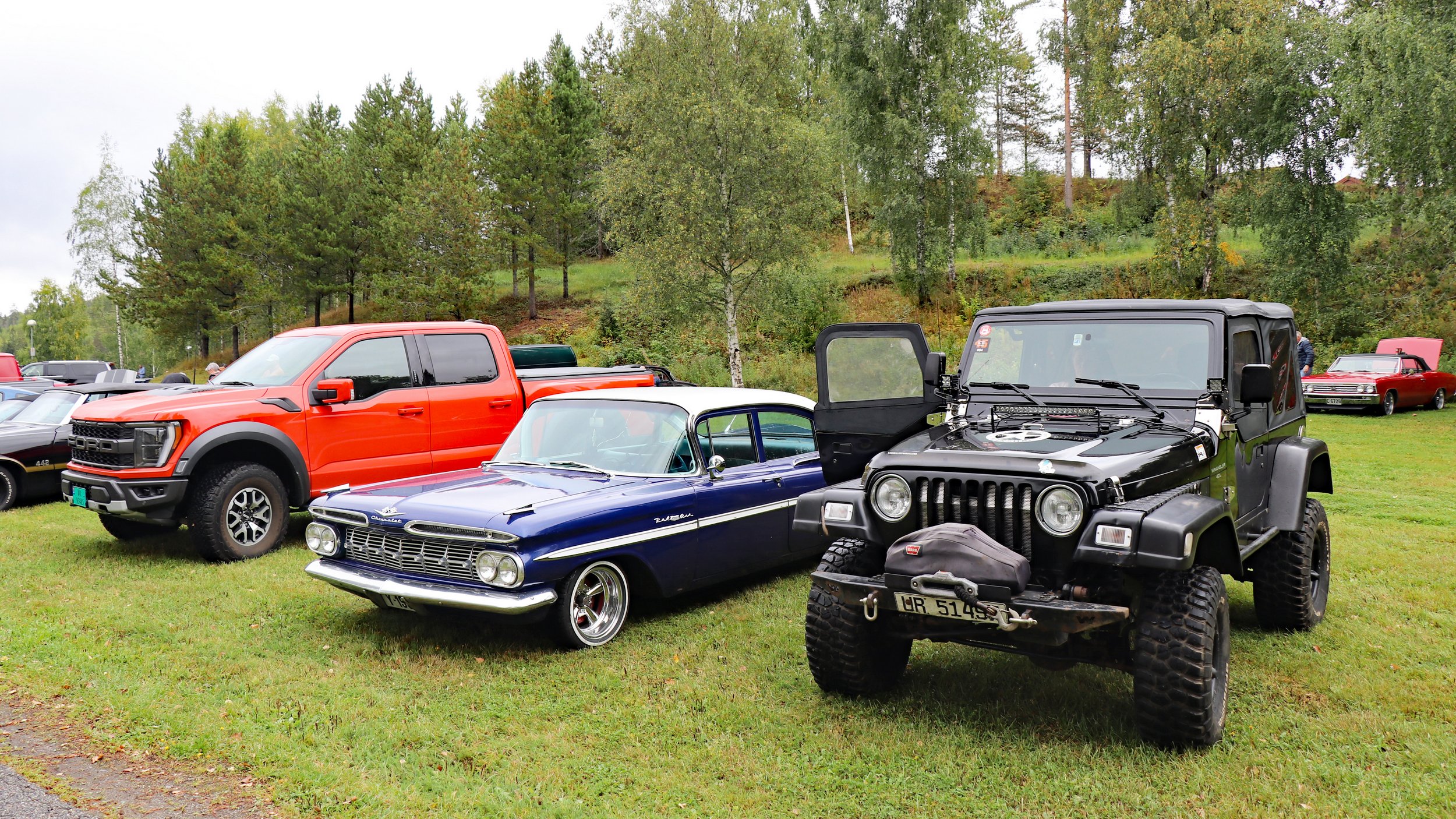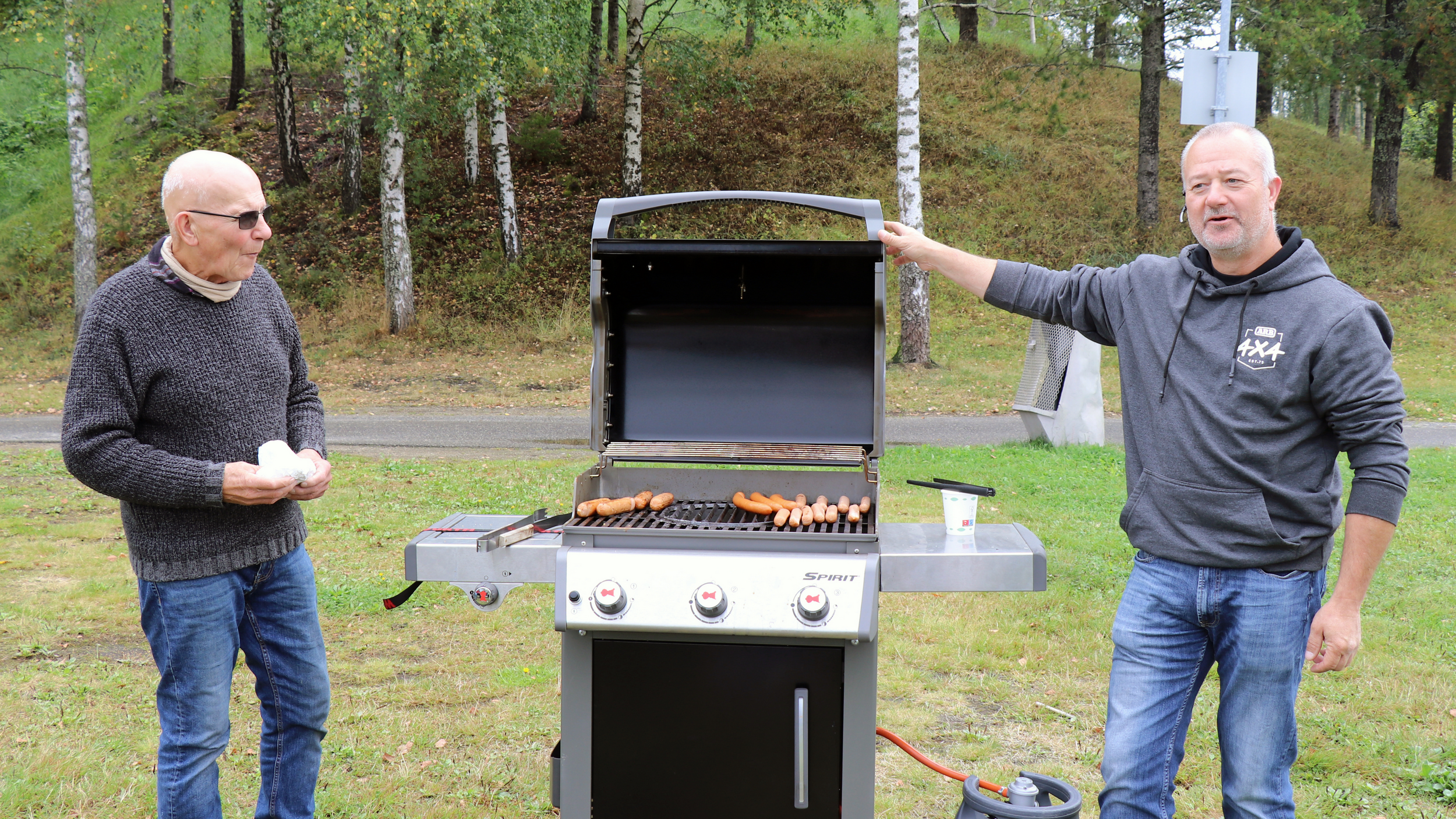 29 biler fulle av blide folk, trosset en grå søndag morgen og møtte opp ved Skedsmohallen for å bli med på den årlige cruisingen rundt Øyeren. Det tradisjonelle stoppet ved Solbergfoss for grilling og en fin prat var selvsagt lagt inn. Frode hadde festet den lille, transportable (🤪🤣🤪) gassgrillen som ballast bak på Jeep’en, slik at vi fikk grillet både pølser og hamburgere. Takk for en trivelig tur! Foto: Kjetil E. Nygaard