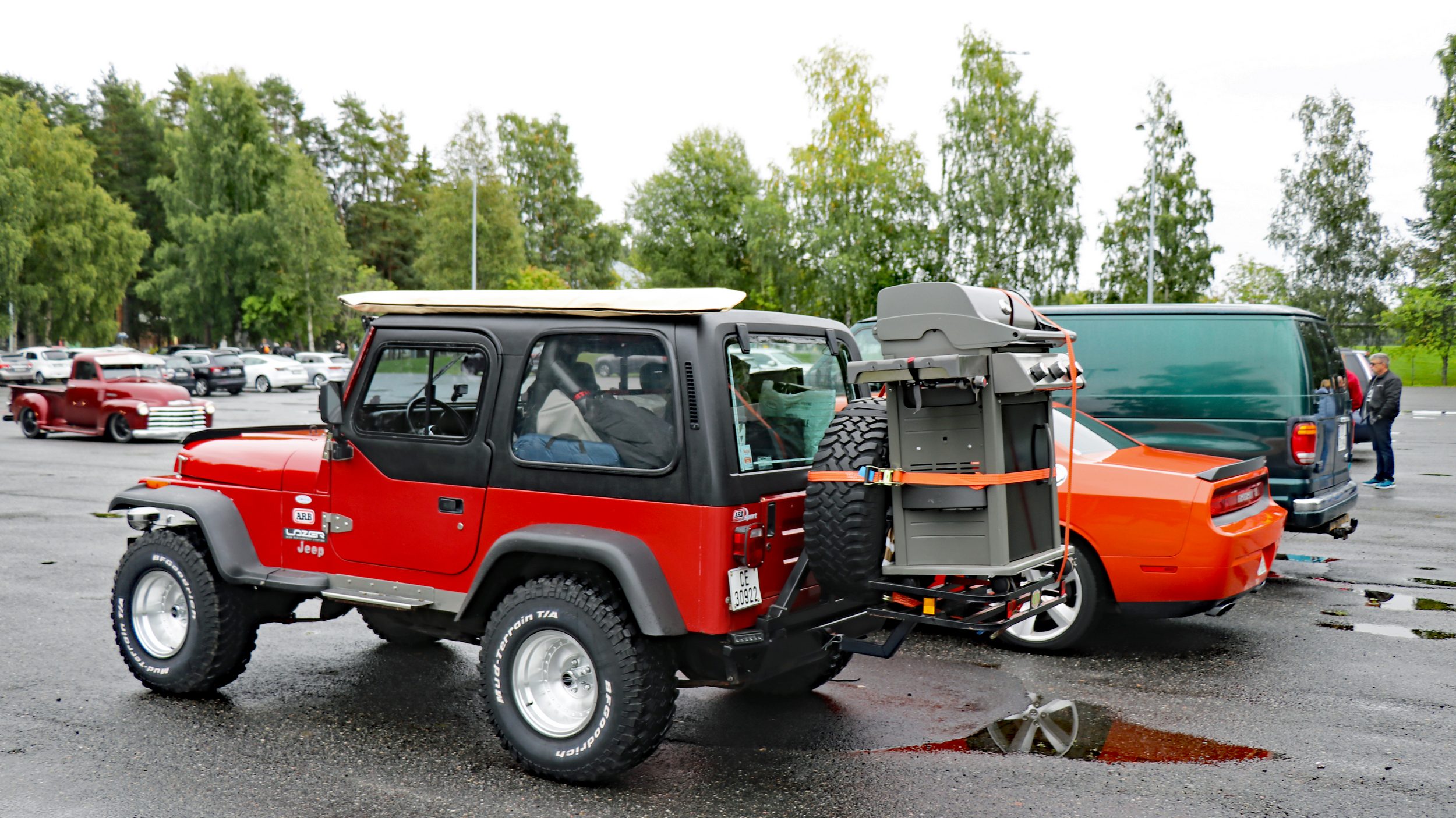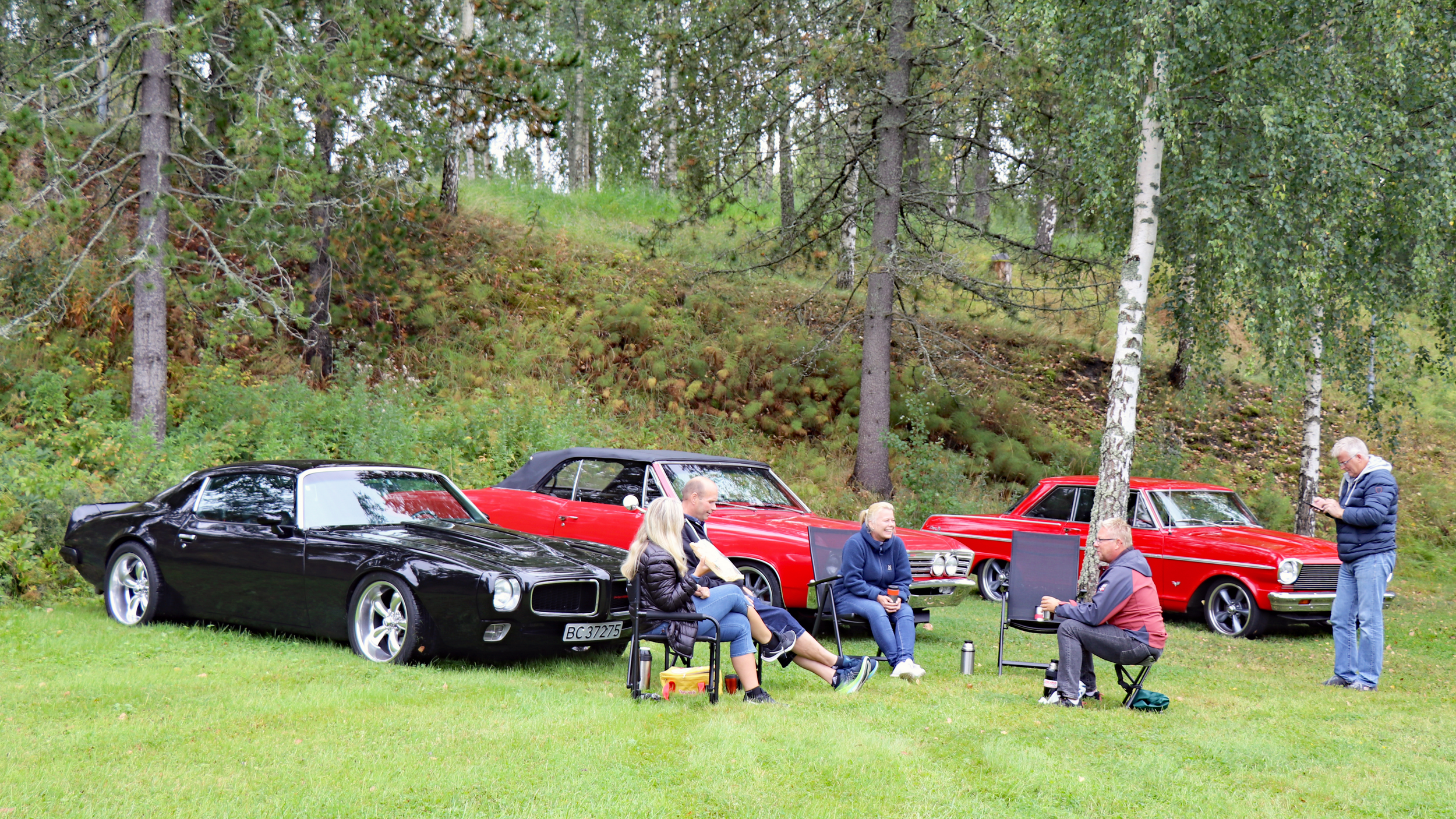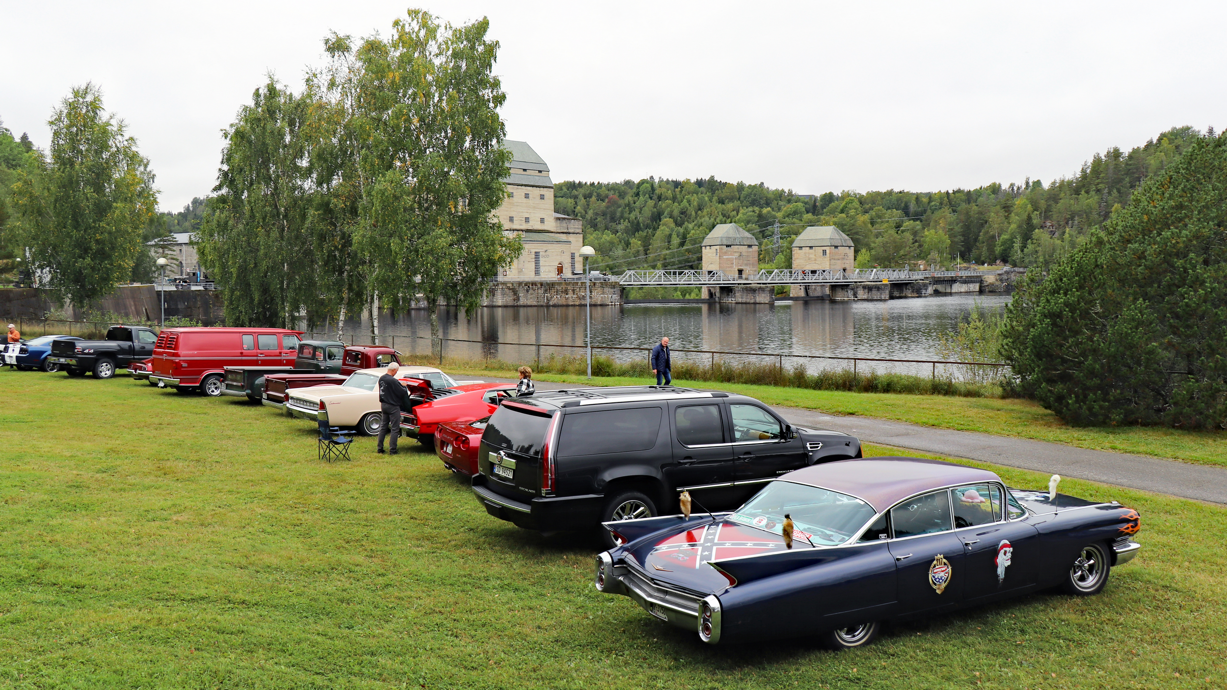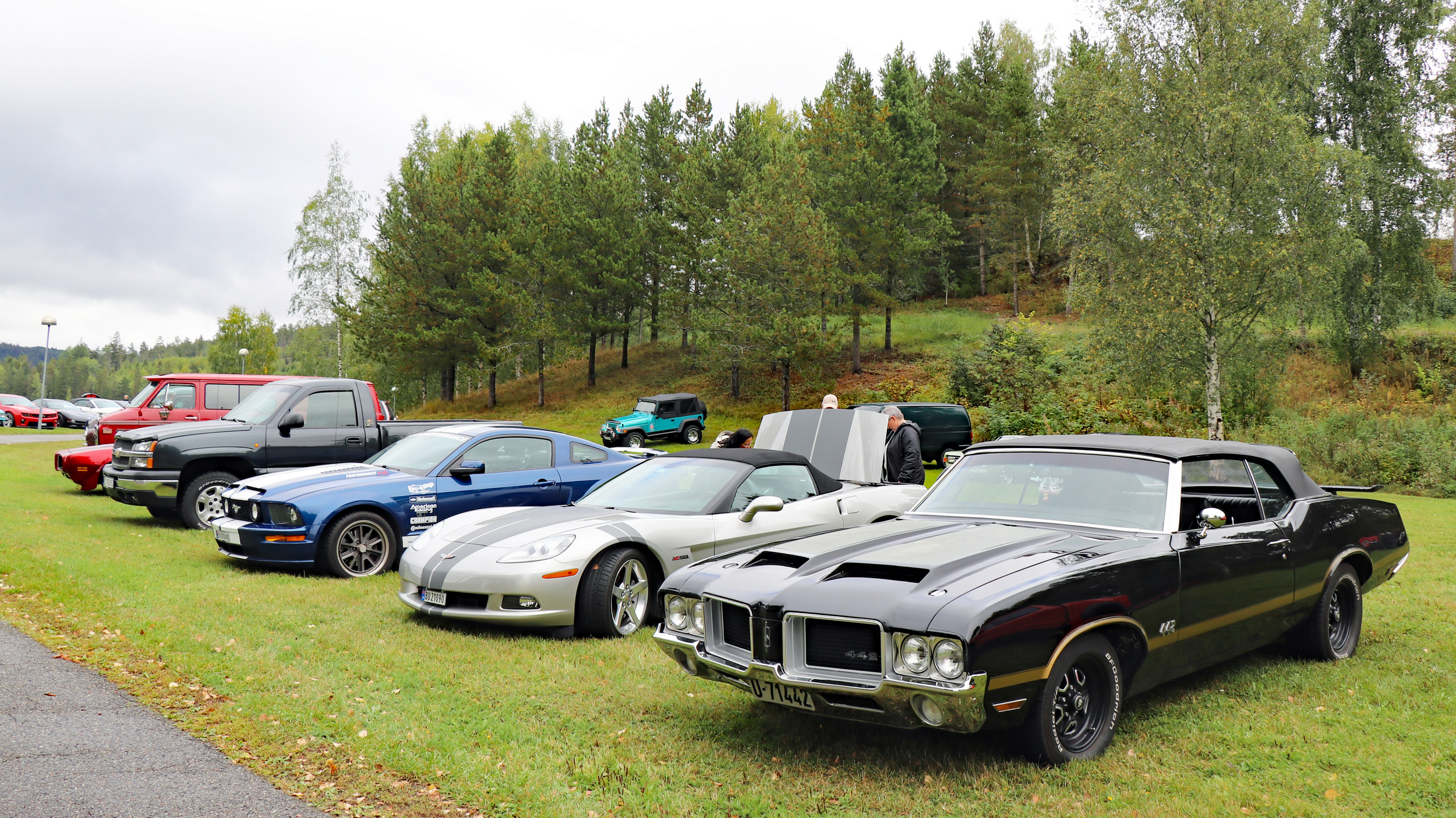 29 biler fulle av blide folk, trosset en grå søndag morgen og møtte opp ved Skedsmohallen for å bli med på den årlige cruisingen rundt Øyeren. Det tradisjonelle stoppet ved Solbergfoss for grilling og en fin prat var selvsagt lagt inn. Frode hadde festet den lille, transportable (🤪🤣🤪) gassgrillen som ballast bak på Jeep’en, slik at vi fikk grillet både pølser og hamburgere. Takk for en trivelig tur! Foto: Kjetil E. Nygaard