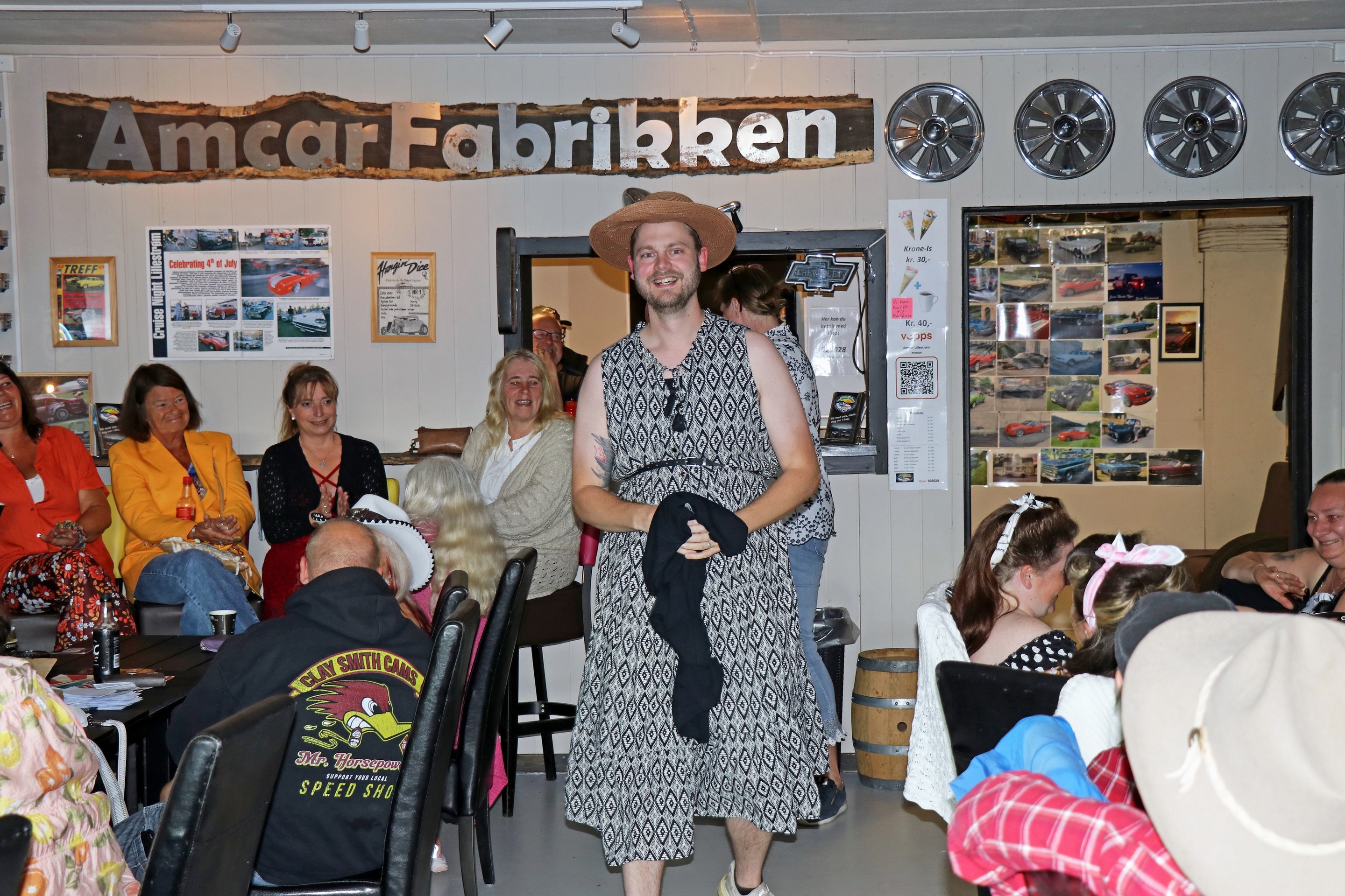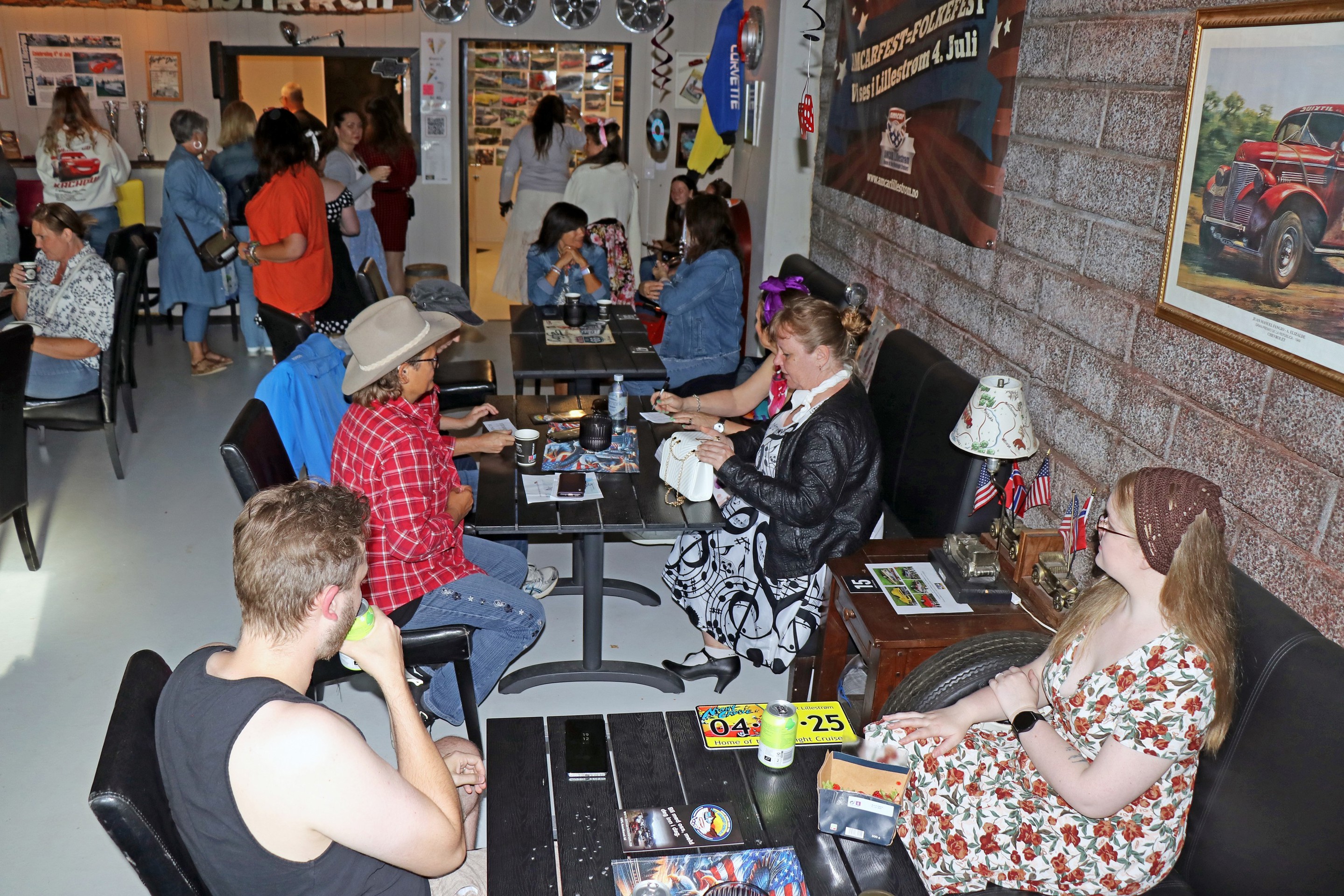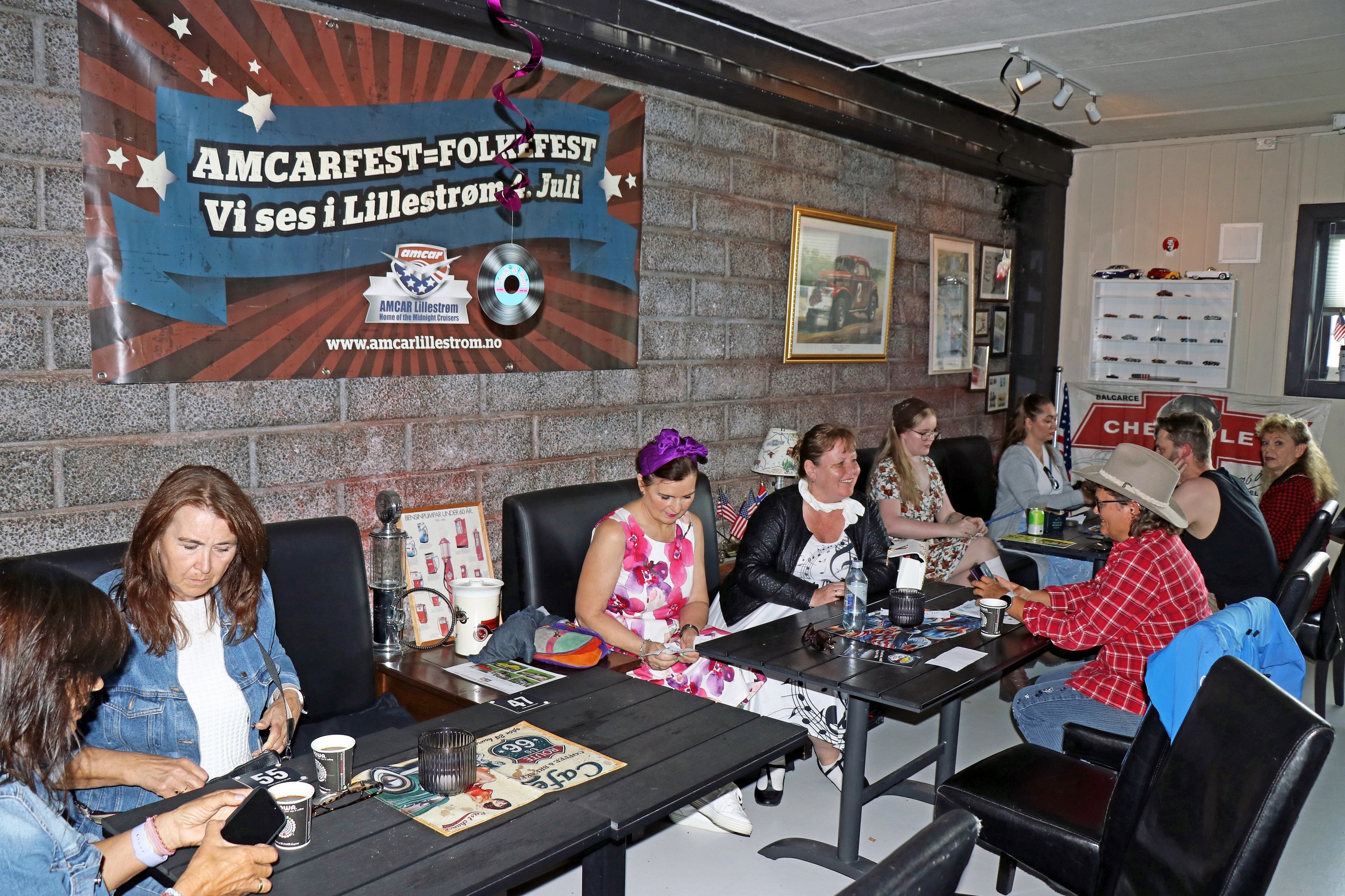 21 biler fulle av pyntede og cruising-stemte damer, var med på cruisingen som startet ved Amcar Lillestrøms klubblokale, AmcarFabrikken; Stedet hvor Amcar-folk møtes! En stor takk går til Annie Skogheim som i år igjen tok ansvaret for arrangementet, hvor det var lagt inn stopp med quiz ved Rælingen Rådhus, før turen gikk tilbake til AmcarFabrikken for premieutdeling. Det var deltagerne som stemte frem sine favoritter i kategoriene "Fineste bil" og "Fineste antrekk". Årets quiz-master og også vinner av pokalen for fineste bil, ble Jeanette H. Gundersen med sin 1959 Ford Fairlane convertible. Ekstra hyggelig var det at hun hadde arvet bilen etter sin far. Pokalen for "Fineste antrekk" var det Line Stenerud som vant. Vi gratulerer alle vinnerne! Foto: Ingrid og Kjetil E. Nygaard.
