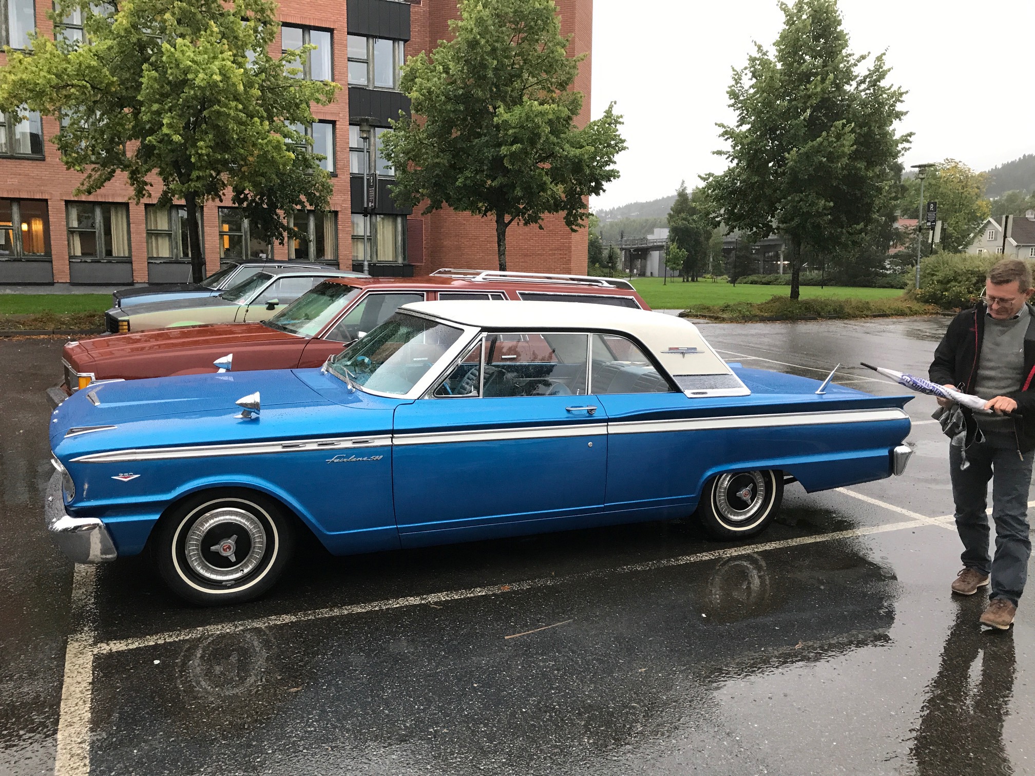 13 biler trosset uværet og møtte opp til cruising i Lillestrøm. Det var til og med kø i kiosken... Tusen takk til alle som møtte opp! Foto: Frode Søberg