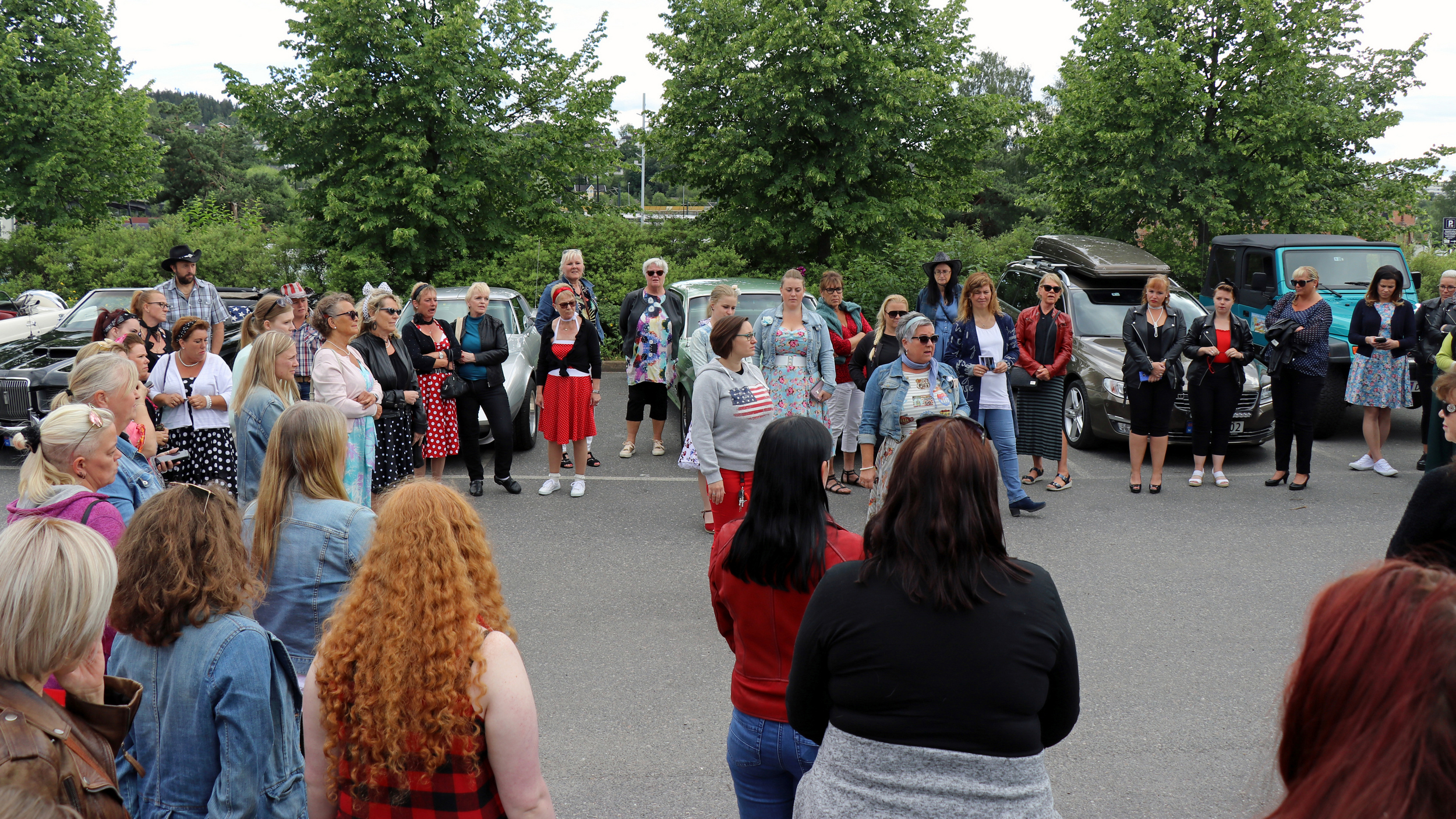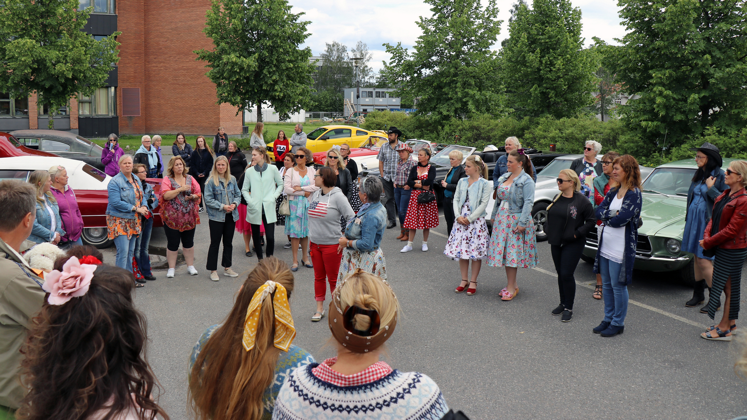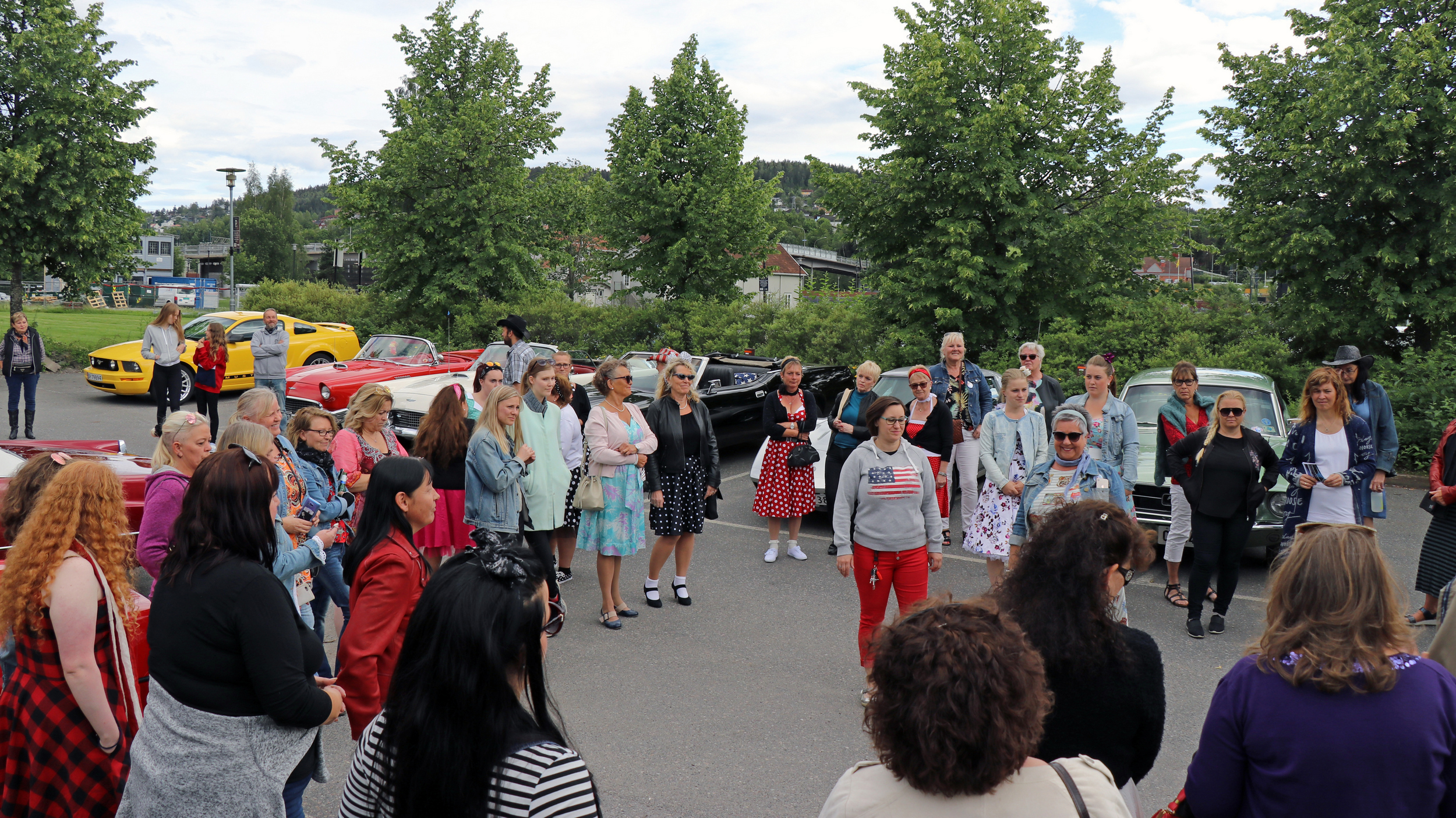 43 biler og enda flere festkledte damer var med på årets Ladies Cruising i Lillestrøm, onsdag 3. juli 2019. Foto: Kjetil E. Nygaard