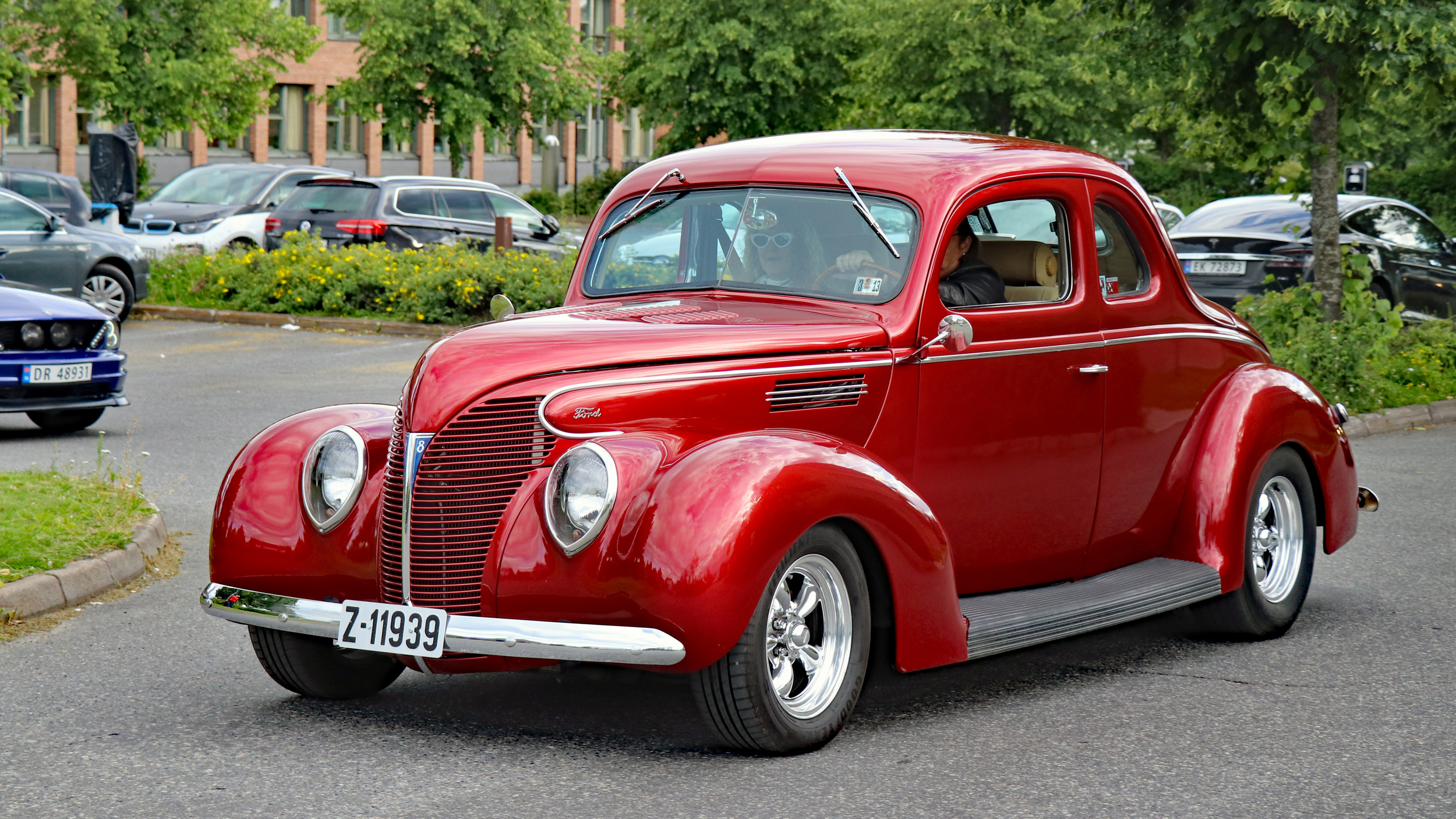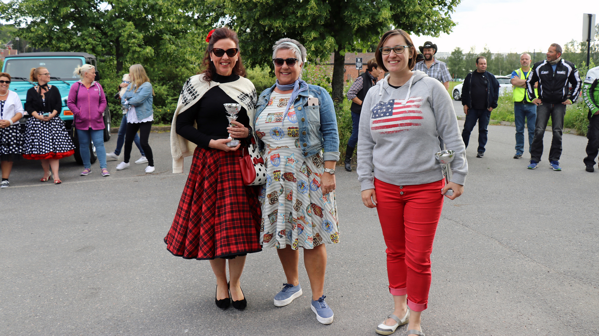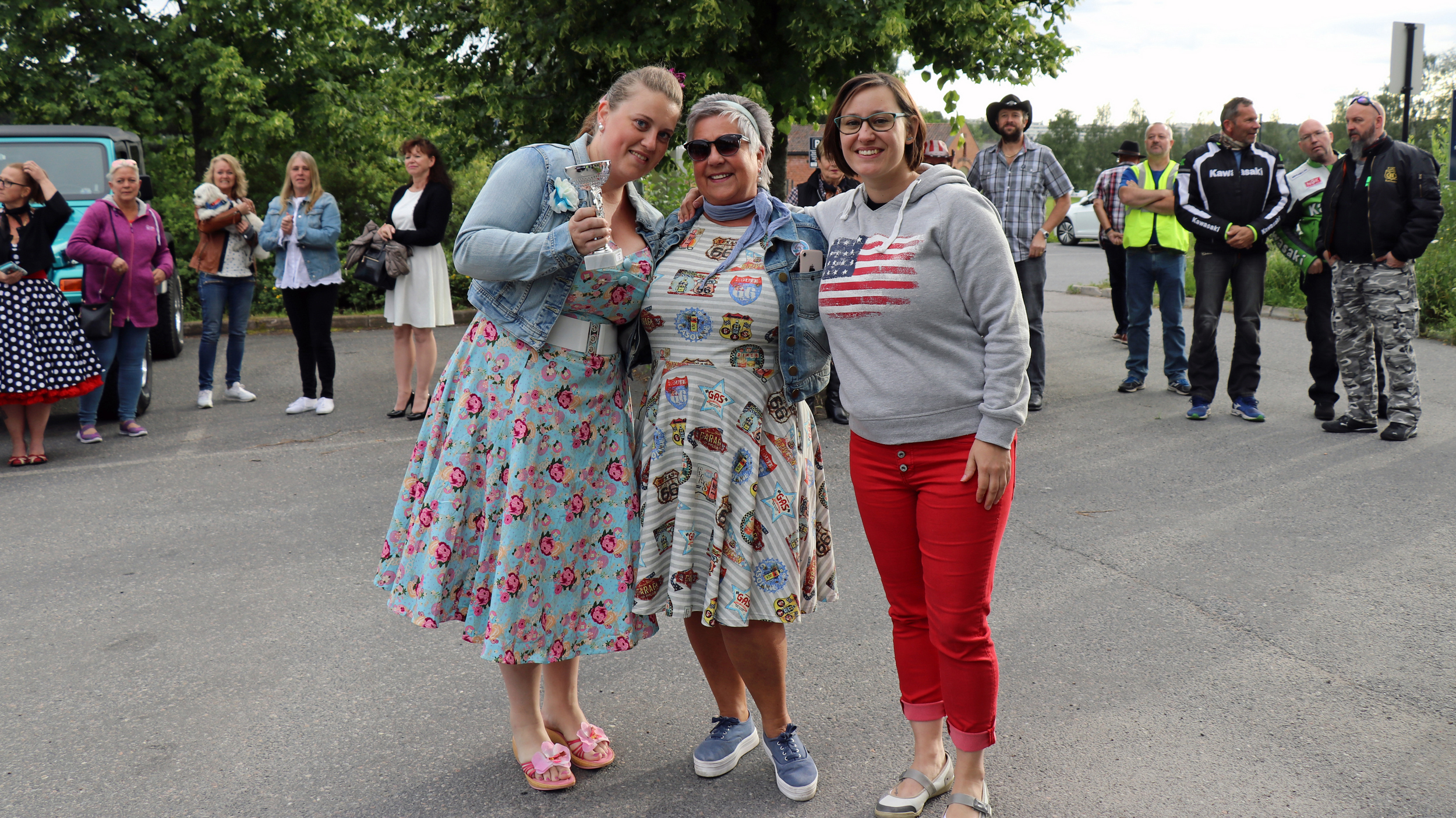43 biler og enda flere festkledte damer var med på årets Ladies Cruising i Lillestrøm, onsdag 3. juli 2019. Foto: Kjetil E. Nygaard